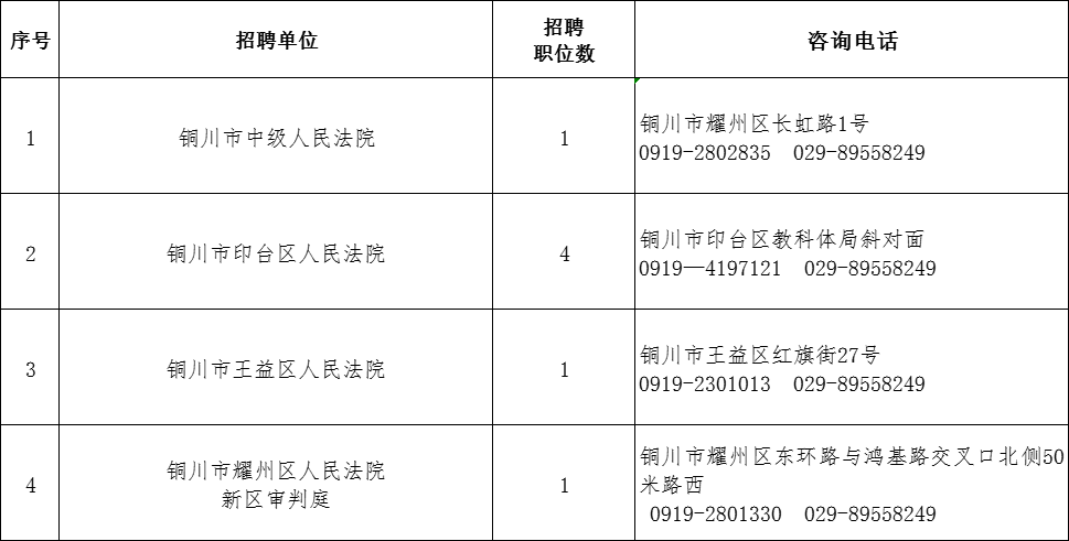 銅川法院2024年度面向社會(huì)公開(kāi)招聘聘用制司法輔助人員職位表