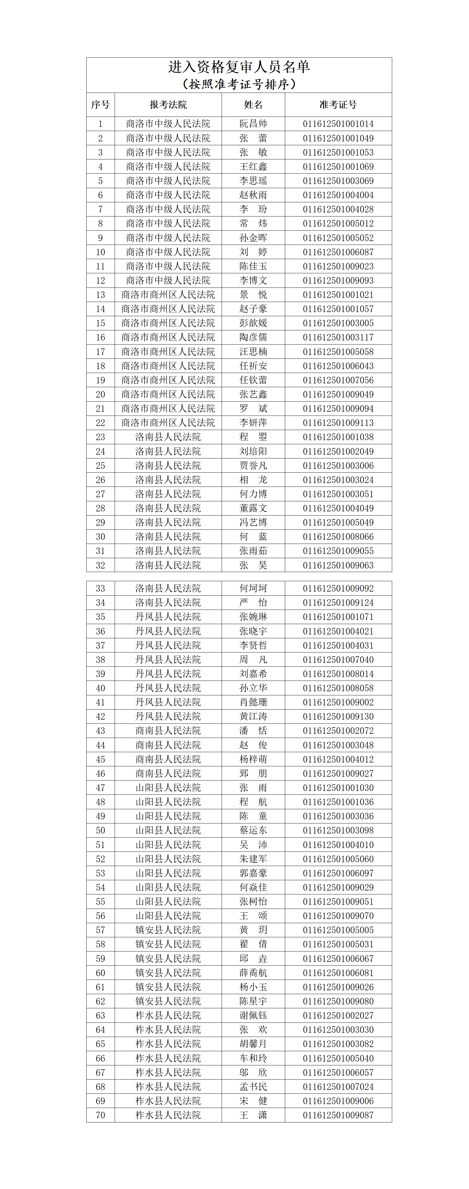 資格復審工作結束3個工作日內,進入面試人員名單在商洛市中級人民法院和陜西秦潤人力資源集團有限公司官網和微信公眾號上進行公布。